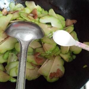 4. 加入扶手瓜:将切好的扶手瓜片放入锅中,翻炒均匀。